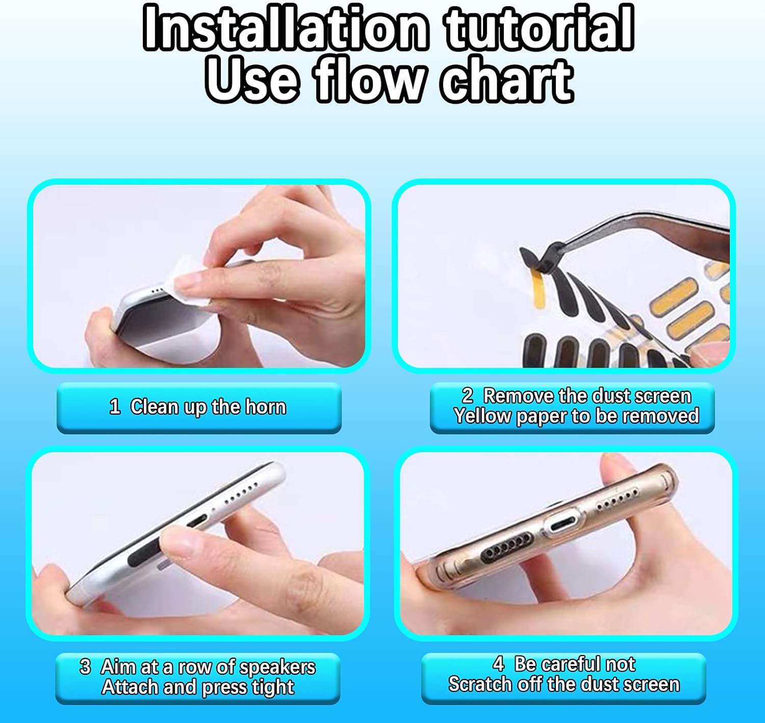 Keep your phone clean and protected with this high-density Dustproof Speaker Mesh Sticker Set. Designed with ultra-fine fiber mesh, these stickers prevent dust, dirt, moisture and micro-particles from entering your earpiece and speaker grills—without affecting sound quality.Ideal for all smartphones including iPhone, Samsung, Vivo, Oppo, Xiaomi and more. Simple peel-and-stick installation makes it the easiest dust protection solution for your device.⸻🌟 FEATURES • High-density fiber mesh for strong dust & splash resistance • Protects earpiece, speaker grill, mic holes & charging port area • Ultra-thin design maintains original sound clarity • Easy to apply with strong yet safe adhesive • Universal sizing suitable for most phone models • Waterproof, breathable and long-lasting protection⸻🎯 USE CASES • Protect new phones from dust entering speaker grills • Restore clarity on phones that attract dust frequently • Ideal for dusty environments, travel, or outdoor use • Prevent moisture or small particles in the earpiece area • Perfect for resale cleaning before selling your phone.